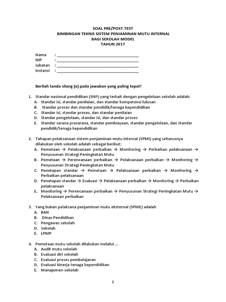 Soal Post Test Penguatan Kepala Sekolah 2020 Pdf : Posttest Bimtek Spmi Revisi - Free download soal pretest penguatan kepala sekolah sd 2019 pdf.berikut ini beberapa contoh soal yang mungkin saja keluar di soal un sd mi 2019 nanti.. Berikut ini contoh soal post test posttest pengembangan keprofesian berkelanjutan pengawas sekolah. Contoh studi kasus bimbingan dan konseling. Berikut ini contoh soal post test tes akhir diklat calon kepala sekolah ini tentu hanya contoh dalam pelaksnaannya mungkin berbeda namun ruang lingkupnya kemungkinan sama. Berikut contoh soal tes seleksi calon kepala sekolah. Panduan penilaian potensi kepemimpinan ppk suaidinmaths.